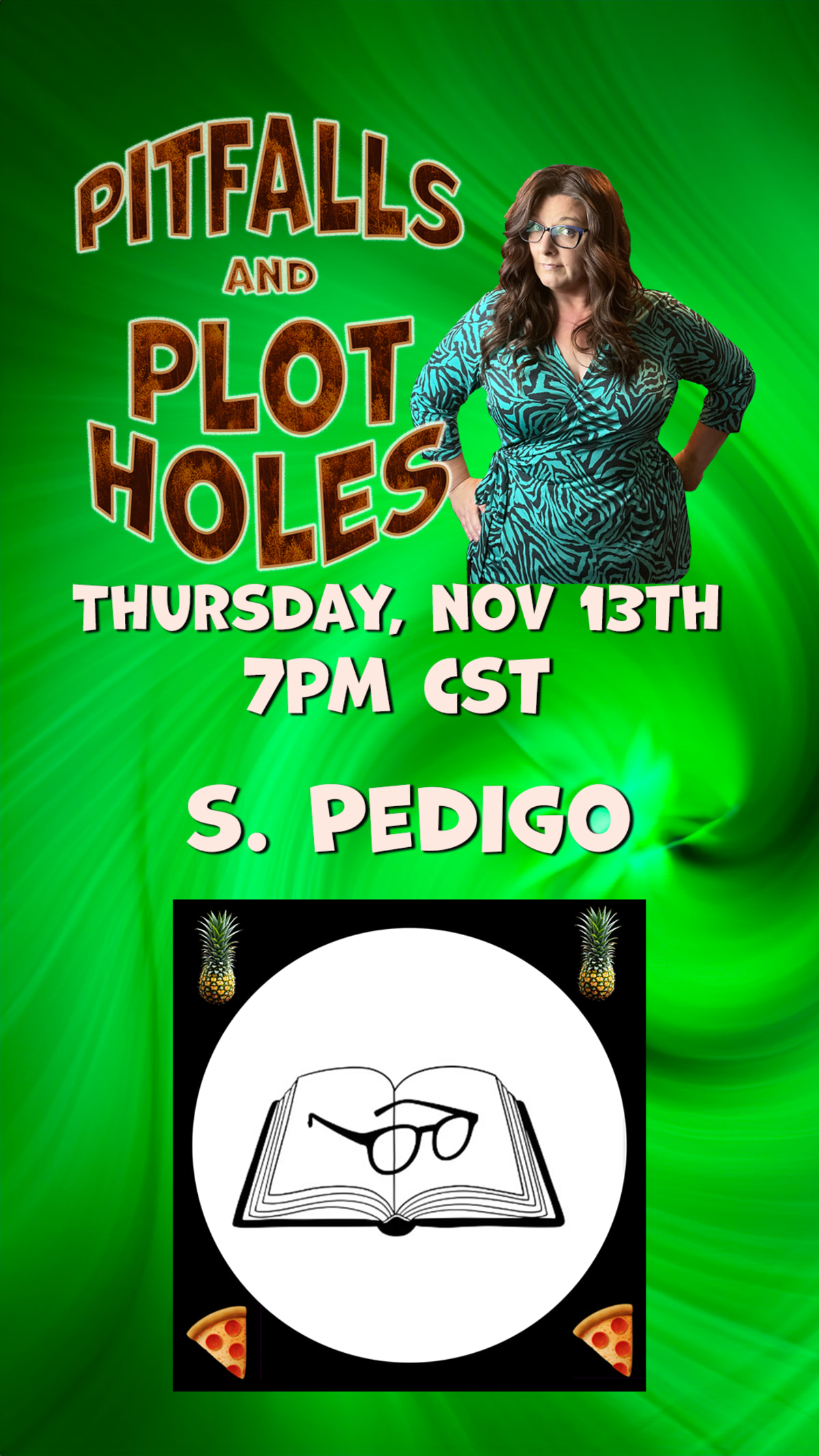 Join us Thursday, November 13th at 7PM CST as Jen interviews S. Pedigo about his upcoming debut release, Cosplay and Consequences. Please note- there will also be arguing about pineapple on pizza and it's possible pineapple chunks may be thrown.
